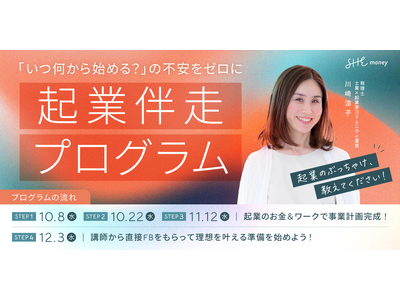 SHEmoney、お金の面に特化した起業の知識習得から実践までを学び実践する「起業伴走プログラム」リニューアル開催決定!