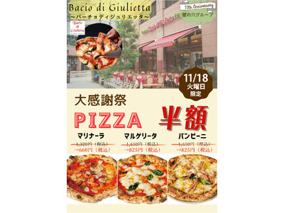 イタリア本場のピッツァ「バーチョ・ディ・ジュリエッタ恵比寿店」 11月18日(火)大感謝祭を開催!