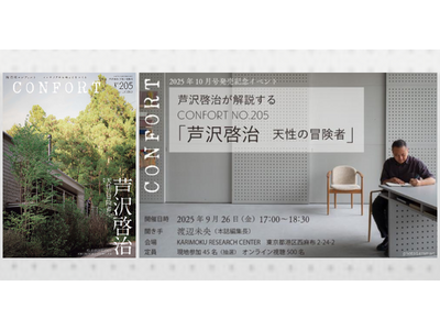 建築住宅インテリア資格等の専門書を発行する株式会社建築資料研究社(所在地:東京都豊島区、代表取締役社長:馬場栄一)は、雑誌『CONFORT』2025年10月号:特集「芦沢啓治 天性の冒険者」の...