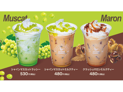 【bb.q オリーブチキン】秋の味覚をお届け♪爽やかなシャインマスカットとほっくり甘いマロンを楽しむ季節限定ドリンク「マスカット&マロン」シリーズ9月11日(木)より新登場!