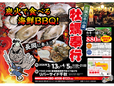 新潟県リバーサイド千秋に「出張カキ小屋」参上! 3月13日~期間限定開催!《 宮城県産殻付き牡蠣が一盛り880円!! 》