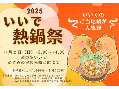 山形県南部 飯豊町(いいでまち)の秋の味覚が満載! 山形県飯豊町では「道の駅いいで めざみの里観光物産館」にて、地産地消の祭典いいで熱鍋祭を開催します。 町内産の食材を用い趣向を凝らした鍋料理...