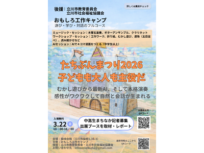 ~立川市教育委員会社会福祉協議会後援:インターネット求人の先駆者が仕掛ける、地域団体と住民が「感動」でつながる交流の場~ ボランティア団体「おもしろ工作キャンプ(代表:鈴木明)」は、2026年...