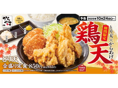 【人気No.1が復活】とり天もからあげも1度に味わう!ご好評にお応えして「とり天合盛り定食」がからやまに期間限定で登場