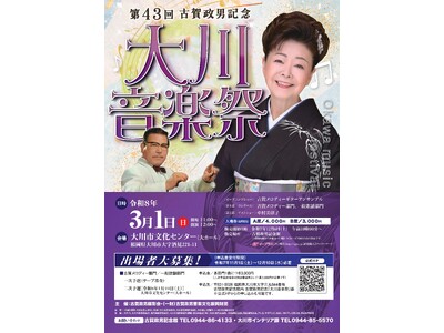 歌手の登竜門ともいわれる歴史ある歌謡コンテストを古賀政男先生のふるさと「大川市」で今年も開催します。全国の「のど自慢」の皆さんのご応募をお待ちしております。 第43回古賀政男記念「大川音楽祭」...