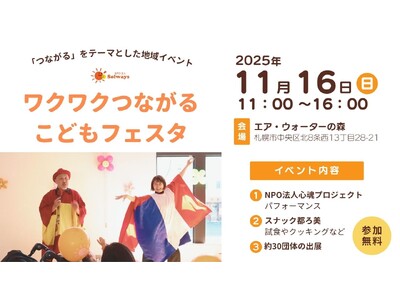 NPO法人ソルウェイズは、すべての子どもたちが地域であたりまえに暮らせる社会になるよう、2025年11月16日(日)に、エアウォーターの森にて「ワクワクつながるこどもフェスタ」を初開催します。...