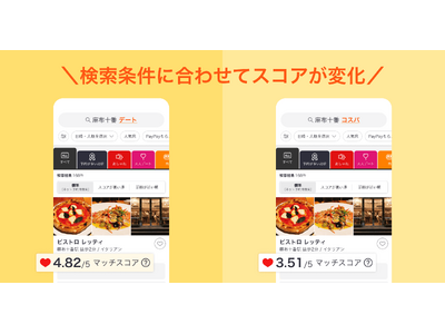 「みんなの4.0点」が「私にも良い」とは限らない!Retty、検索条件で点数が変わる新指標「マッチスコア」を導入
