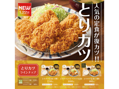 「やよい軒」サクサク衣にジューシーな旨味が復活!"とりカツ"が選べるラインナップで再登場『とりカツ定食』