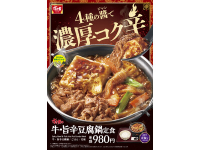 【すき家】4種の醤(ジャン)で濃厚コク辛!牛肉と豆腐で食べ応え抜群!鍋商品の第2弾「牛・旨辛豆腐鍋定食」を発売