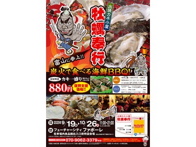 9/19~ 出張カキ小屋が今年もファボーレに出店!「地域活性復興支援プロジェクト 牡蠣奉行」休日にご家族と!お仕事帰りの皆様も! 特設会場テント内にテーブル、炭火焼きのコンロを設置し、利用客が...