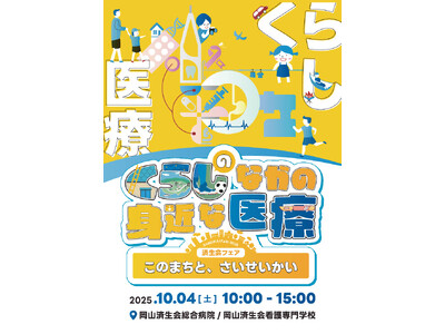 健康がもっと身近になる、医療をもっと知りたくなる! 岡山済生会総合病院(岡山市北区国体町)は、2025年10月4日(土)に済生会フェアを開催します。医療や福祉、健康について楽しく学べる病院開放...