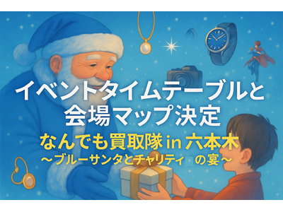 ホリエモン主演ミュージカル「ブルーサンタクロース2025」の関連イベント「なんでも買取隊 in 六本木 ~ブルーサンタとチャリティの宴~」のタイムテーブルと会場マップ決定!