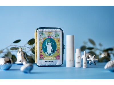 早坂香須子さん作画の"キャットタロット"をデザインしたエシカルポーチに、ブランドの真髄「オーガニック×エイジングケア*シリーズ」を詰め込んだ特別なコフレが登場