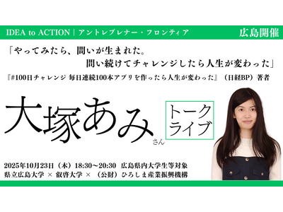 叡啓大学(学長:有信睦弘、所在地:広島市中区)は、2025年10月23日(木)18:30~20:30で特別セミナー「やってみたら、問いが生まれた。問い続けてチャレンジしたら人生が変わった 大塚...