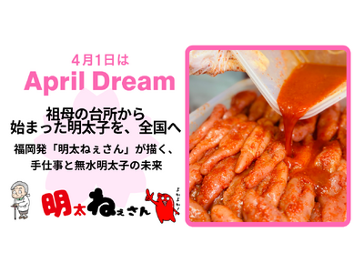 祖母から受け継いだ無水製法と手仕事で、工場では再現できない味を全国へ 当社は、4月1日を夢を発信する日にしようとするApril Dreamに賛同しています。このプレスリリースは「明太ねぇさん」...