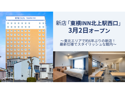 ~東北エリアで約6年ぶりの新店!最新仕様でスタイリッシュな館内~ 株式会社東横インは、3月2日(月)に「東横INN北上駅西口」をオープンいたします。ぜひ東横INN公式予約サイトからご予約くださ...