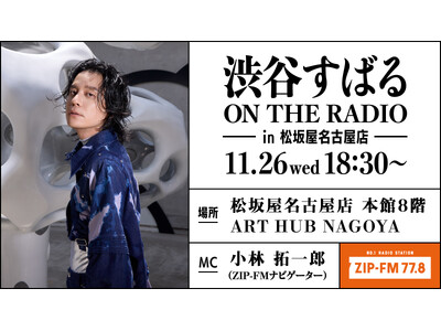 11/26(水)18時30分~ 松坂屋名古屋店本館8階 ART HUB NAGOYAでZIP-FM「渋谷すばる ON THE RADIO in 松坂屋名古屋店」開催決定!