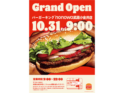武蔵小金井駅直結施設 nonowa武蔵小金井に「バーガーキング(R) nonowa武蔵小金井店」が10月31日(金)にオープン!