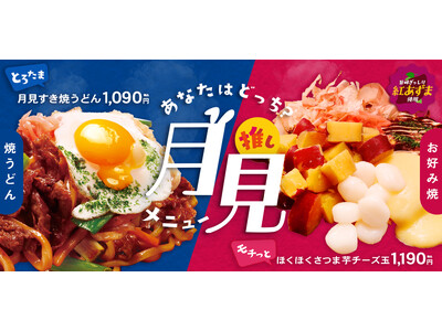 <お好み焼きのどんどん亭> とろ~り×ほくほく!秋だけの"推し月見メニュー"が新登場!すき焼きうどん派?さつま芋チーズ玉派?SNSで推しメニュー投票キャンペーンも開催