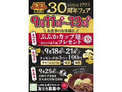 吉祥寺「らーめん専門店ぶぶか」9月11日から『30周年フェア』を開催!