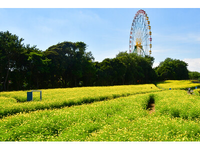 キバナコスモス "レモンブライト" が見頃を迎えています(国営ひたち海浜公園)