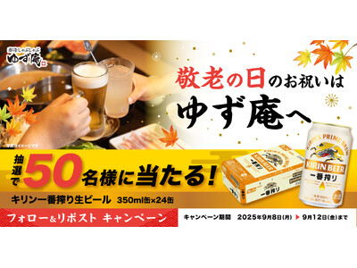 【ゆず庵】「キリン 一番搾り生ビール」が当たる!敬老の日Xプレゼントキャンペーンを開催