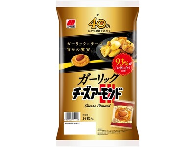 チーズアーモンド40周年記念は大人のチーズアーモンド。ガーリックの香りとチーズの旨みがお酒によく合う「ガーリックチーズアーモンド」新発売