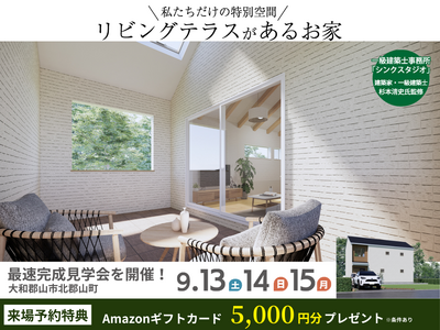 9月13日(土)~15日(月祝)、デザインと快適性能を両立した住まいを現地で体感 大和郡山市北郡山町に誕生した全2邸の分譲地「ココナラ北郡山III」にて、建築家が手がけた新しいモデルハウスが完...