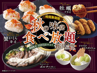 【時間無制限!!贅沢三昧♪秋を堪能♪食べ放題!!】10/15迄!「ザ ブッフェ ニューマーケット越谷」にて『牡蠣フライ』や『蟹いくら寿司』など魅力満載な秋メニューが楽しめる『秋の贅沢三昧コース』が新登場!