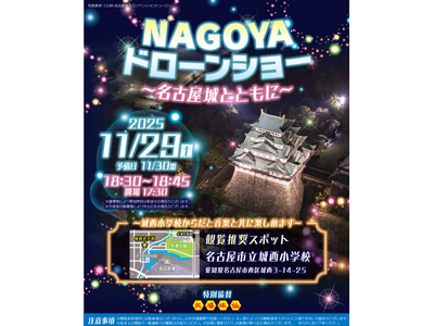 夜空を彩る光と音のエンターテインメント 中京テレビ放送株式会社(本社:名古屋市中村区)は名古屋の歴史的人物や名古屋名物を夜空に描く壮大なドローンショー「NAGOYAドローンショー~名古屋城とと...
