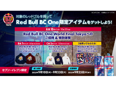 9月10日より「Red Bull BC One セブンイレブン限定キャンペーン」開催 世界大会観戦チケットやスト6のコラボグッズをゲットしよう! レッドブルジャパン株式会社は、世界レベルの1o...