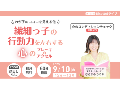 9/10繊細な子の"挑戦する力"を引き出す!心を可視化する「ココロファインダー」無料体験オンラインライブ開催