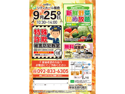 新鮮野菜詰め放題や無料試食会も 株式会社ベルコ(本社:大阪府池田市)は、地域の皆さまに向けた防犯啓発と交流の場として、2025年9月25日(木)に「シティホール飯倉」(福岡市早良区)にて「特殊...