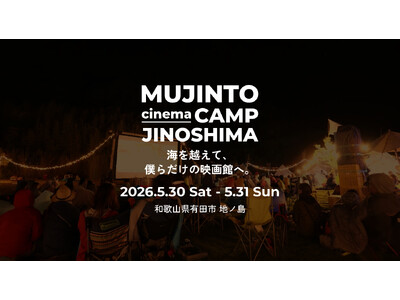 無人島での野外シネマフェス【MUJINTO cinema CAMP JINOSHIMA】 2026.5.30(土)~5.31(日)に開催決定! 3.10(火)よりチケット販売開始!!