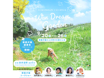 動物愛護週間に都心で癒しと学びを!りく・なつプロジェクト×ピースワンコ Presents 「WAN DREAM GARDEN ~保護犬猫と人の幸せな暮らし方~」を開催します!