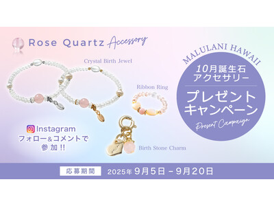 ハワイ発祥の天然石アクセサリーブランド「マルラニハワイ」にて、10月の誕生石「ローズクォーツ」と「トルマリン」を使用した、愛と癒しのアクセサリーをプレゼントするハワイ発「マルラニハワイ」の特別...