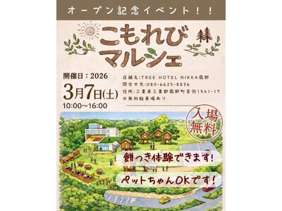 【第4弾発表】オープン記念「こもれびマルシェ」開催『TREE HOTEL NIKKA 菰野』10ブース出店・餅つき体験・キッズルーム無料開放も実施
