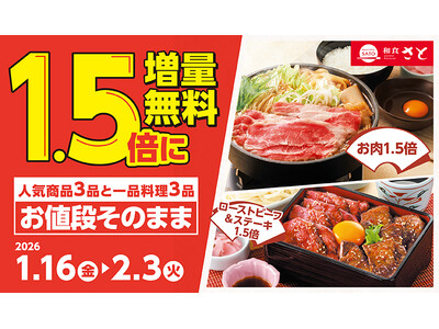 【和食さと】期間限定「1.5倍増量無料キャンペーン」が1/16(金)からスタート