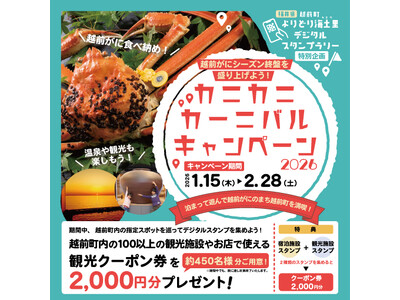 【福井県越前町】越前町周遊スタンプラリー特別企画!越前がにを食べ納め!「カニカニカーニバルキャンペーン2026」を2026年1月15日(木)から開始します!!