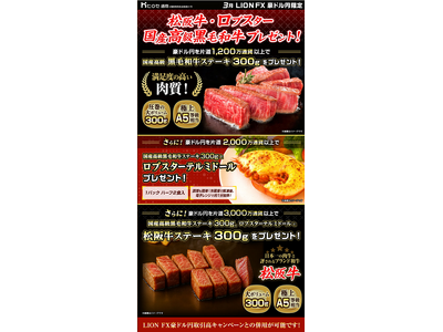 LION FX豪ドル円限定 松阪牛・ロブスター・国産高級黒毛和牛プレゼント!を実施!