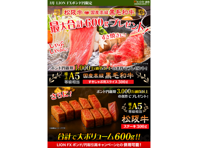LION FXポンド円限定 松阪牛・国産高級黒毛和牛最大600gプレゼント!を実施!