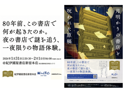~80年前の謎を追う、一夜限りの物語体験~ 株式会社UNROUTE(本社:東京都港区、代表取締役:安藤美冬)は、2026年1月31日(土)~2月1日(日)に紀伊國屋書店新宿本店で開催される「K...