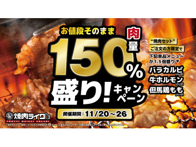 【焼肉ライク】"お値段そのまま"で150%盛り!焼肉セットご注文で追加の単品お肉がボリュームアップ。11/20(木)より開催