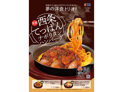 愛媛県西条市のご当地グルメ「西条てっぱんナポリタン」とのコラボメニュー。今年9月30日からの店舗限定販売でご好評をいただいたことから、対象店舗を拡大しての期間限定販売が決定しました! 西条市の...