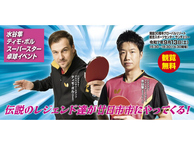 日独卓球界のスーパースターが広島県廿日市市に集結 「バタフライ」ブランドを展開する株式会社タマスは、9月13日(土)に広島県廿日市市で開催される「水谷隼/ティモボル スーパースター卓球イベント...