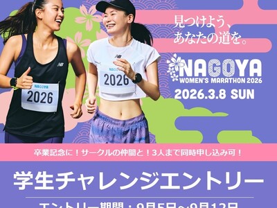 「学生チャレンジエントリー」は大学生、大学院生、専門学生が対象で同時に3人でエントリー可 2025年3月8日(日)に名古屋市内で開催される「名古屋ウィメンズマラソン2026」は、9月18日(木...