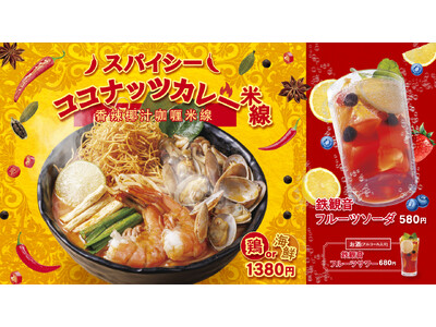 香港米麺「タムジャイサムゴー」の期間限定メニュー!鶏or海鮮が選べる!『スパイシーココナッツカレー米線』新発売。あわせて飲みたい『鉄観音フルーツソーダ』も同時発売