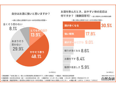 体質によるアルコール耐性と健康リスクは別問題。約9割の内科医が「飲酒後のケアをすべき」と回答 株式会社自然食研(所在地:大分県豊後高田市、代表者:佐々木 興平)は、1.週1回以上飲酒する20~...