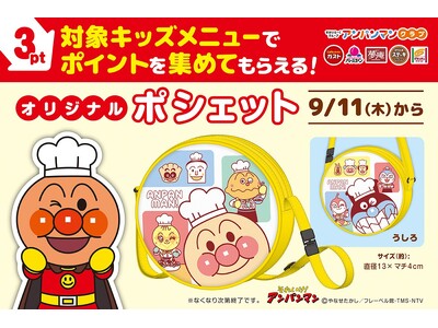 【すかいらーくグループ】9/11(木)~ キッズメニューでポイントを集めてもらえる!オリジナル『アンパンマン ポシェット』新登場!