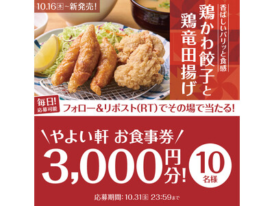 SNSで当たる!「やよい軒」公式X・Instagramで実施 鶏皮餃子と鶏竜田揚げの定食発売記念キャンペーン